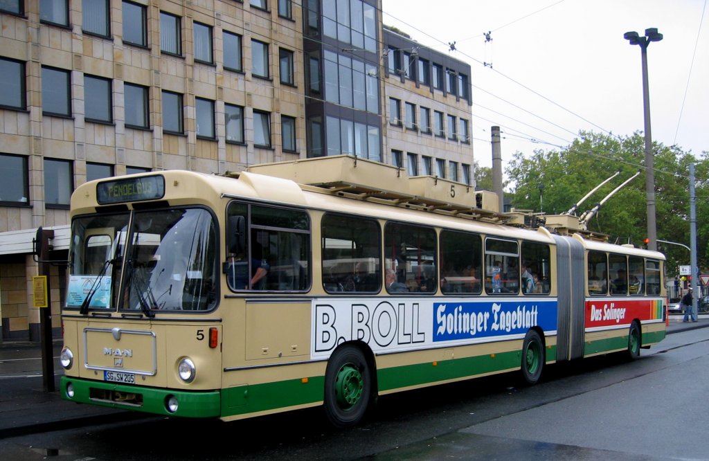 Mercedes-Benz O 405 N (Niederflur-Stadtversion) auf der Linie 693 nach Solingen Graf-Wilhem-Platz an der Haltestelle Solingen Mühlenplatz.(4.7.2012)