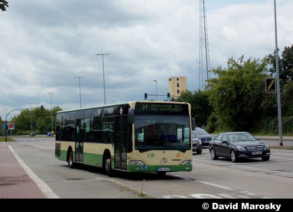 Noch ist Wagen 527 bei den VBBr fleißig im Einsatz ... hier zu sehen auf Linie B an der Malge .