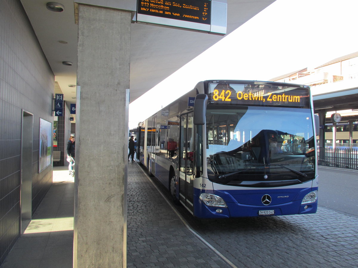 VZO - Mercedes Citaro Nr. 142 beim Bahnhof Uster am 23.2.19. Dieser Citaro ersetzt bei den VZO zusammen mit zehn weiteren neuen Fahrzeugen, die elf Gelenkbusse von 2005. Die Wagen Nr. 52 und Nr. 25 sind momentan aber nach wie vor im Einsatz. Kai Brunner