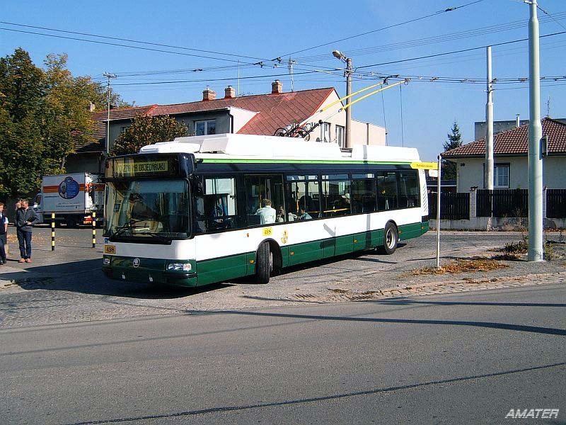 Eine Fotosonderfahrt mit Skoda-Irisbus 24Tr Nr. 498 in der engsten Trolleybus-wendeschleife in Tschechien - in Plzen-Cernice (dort endet Linie Nr. 13). 15. 10. 2005 Petr Kudrej