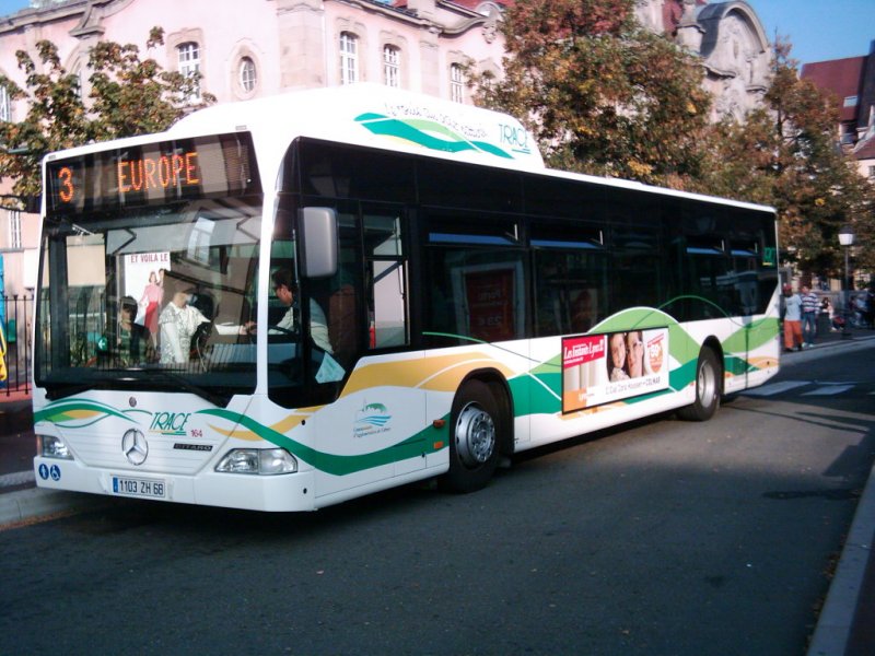 Colmar (F), TRACE, Wagen 166, EvoBus MB O 530 CNG (Citaro) an der Haltestelle  Unterlinden  in der Stadtmitte.
