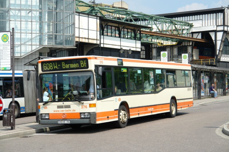 Er steht im August 2008 in Wuppertal Oberbarmen vor dem Bahnhof und wartet auf Fahrgäste.