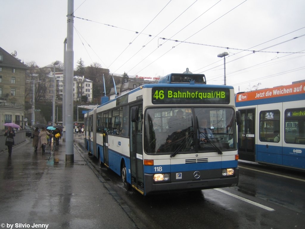 VBZ Nr. 118 (Mercedes O405GTZ) am 1.12.09 auf der Bahnhofbrücke beim HB Zürich.