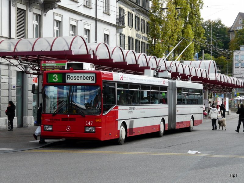 Winterthur - Mercedes O 405 GTZ Trolleybus Nr.147 unterwegs auf der Linie 3 am 11.10.2009