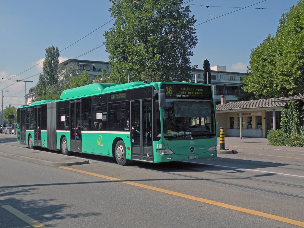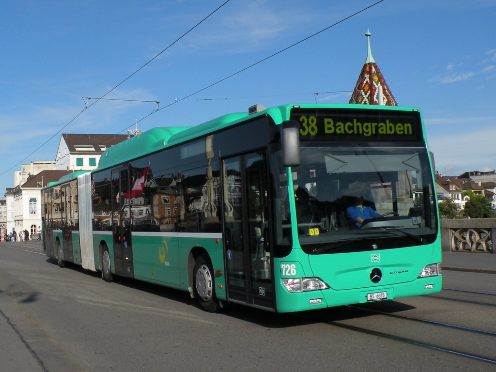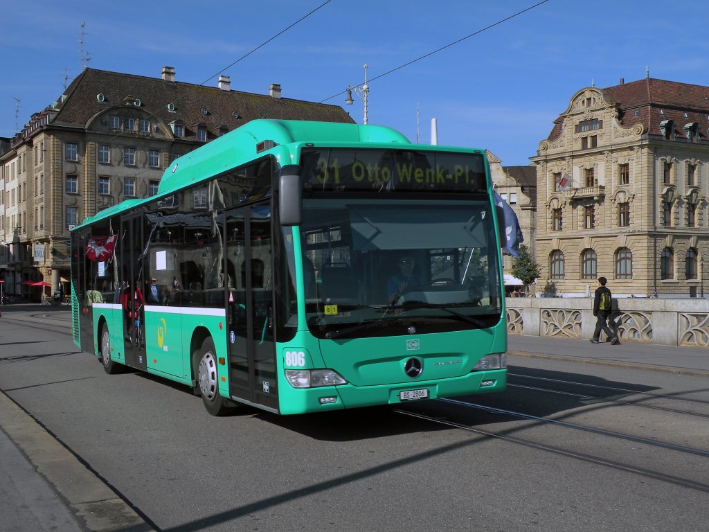 Mercedes Citaro mit der Betriebsnummer 725 fährt auf die Haltestelle Wettsteinplatz auf der Linie 31 ein. Die Aufnahme stammt vom 11.09.2010. Markus Wagner