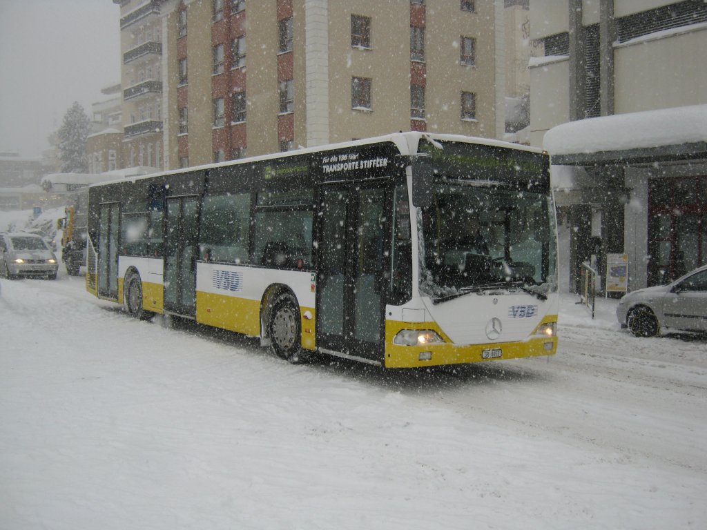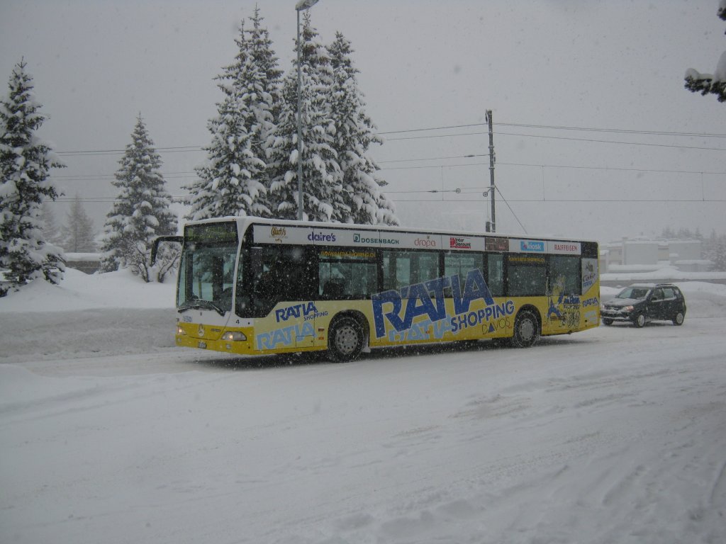 MB Citaro II (3-Achser) der Firma Kessler fährt im Auftrag der VBD auf der Linie 1. Davos Dorf Bahnhof, 03.12.2011.