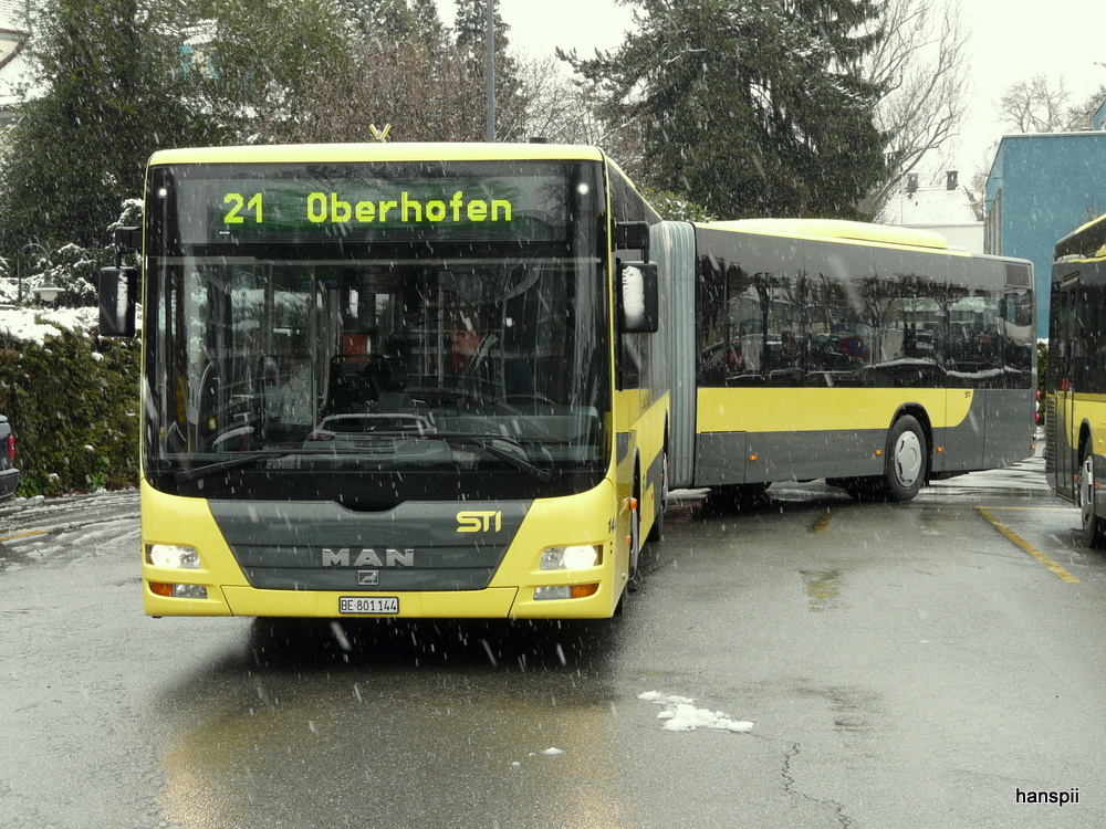 STI - MAN Lion`s City Nr.144 BE 801144 unterwegs auf der Linie 21 in Thun am 30.11.2012