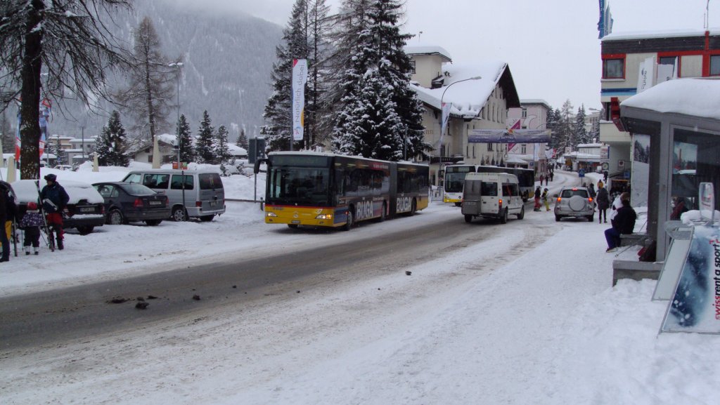 POSTAUTO-Mercedes Citaro mit Büga Werbung in Davos am 23.2.13