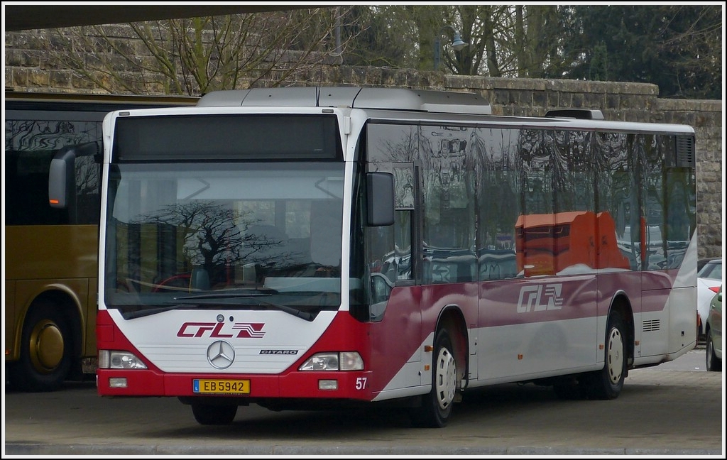(EB 5942) Mercedes Benz Citaro der CFL wartet unter der Brücke in Bettembourg am Bahnhof auf seinen nächsten Einsatz. 05.04.2013 De Rond Hans und Jeanny