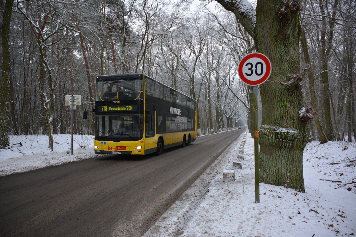 Am 08.01.2017 fährt B-V 3239 (DL 07 / Hof Cicerostraße) auf der Linie 218 zum Messedamm/ZOB. Aufgenommen höhe Grunewaldturm.