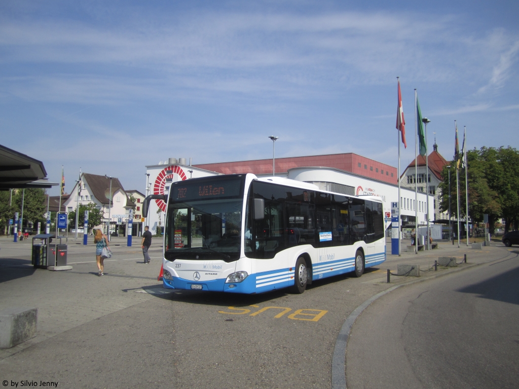 Postauto/PU Schmidt (ex. Regie Yverdon-les-Bains) SG 397 506 (Solaris Urbino 12) am 6.8.2018 beim Bhf. Wil SG. Die frührere Herkunft dieses Postautos ist immer noch am Waadtländer, statt dem St.Galler Wappen unterhalb des Fahrerfensters zu sehen. Silvio Jenny