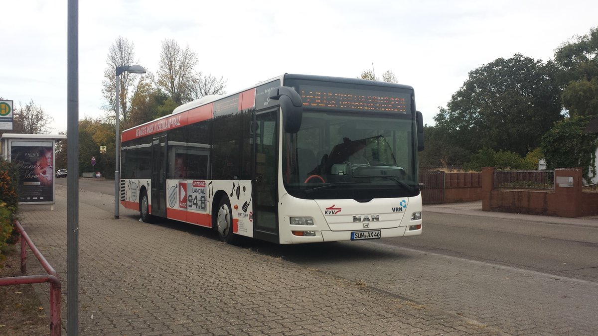Hier ist der SÜW AX 46 von Hetzler Reisen auf der Buslinie 590 nach Kleinfischlingen über Offenbach Friedhof unterwegs. Gesichtet am 31.10.2018 am Schulzentrum Ost in Landau. KVV_Bilder_Doku