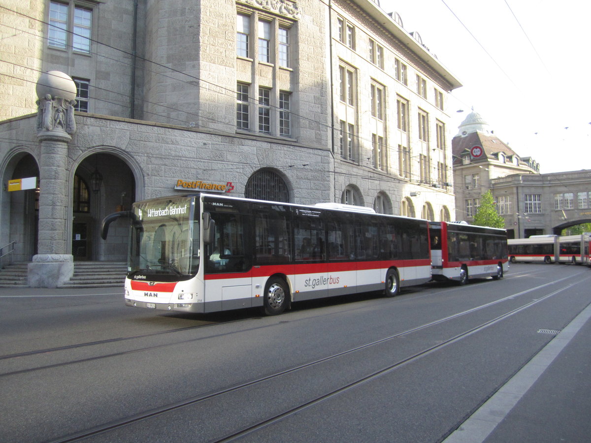 VBSG/St.Gallerbus Nr. 214 (MAN A21 Lion's City + Hess/Lanz&Marti) am 24.4.2020 beim Bhf. St.Gallen