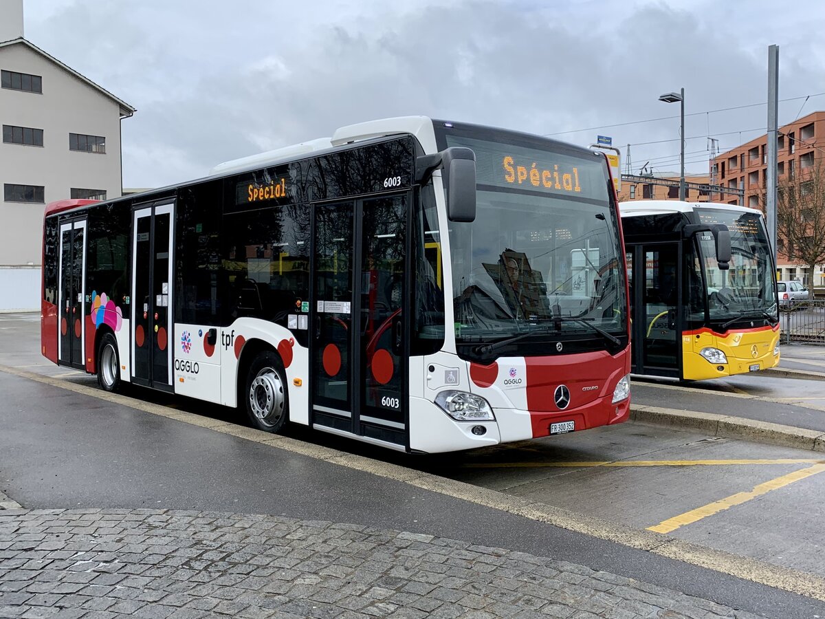 MB C2 K 6003 der TPF am 31.3.22 nach der Abfahrt beim Bahnhof Düdingen.