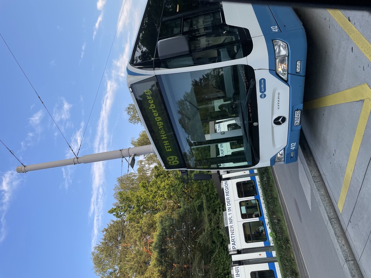 VBZ - Mercedes Citrao No. 412 traveling on the Line 69 in Zurich, Milchbuck