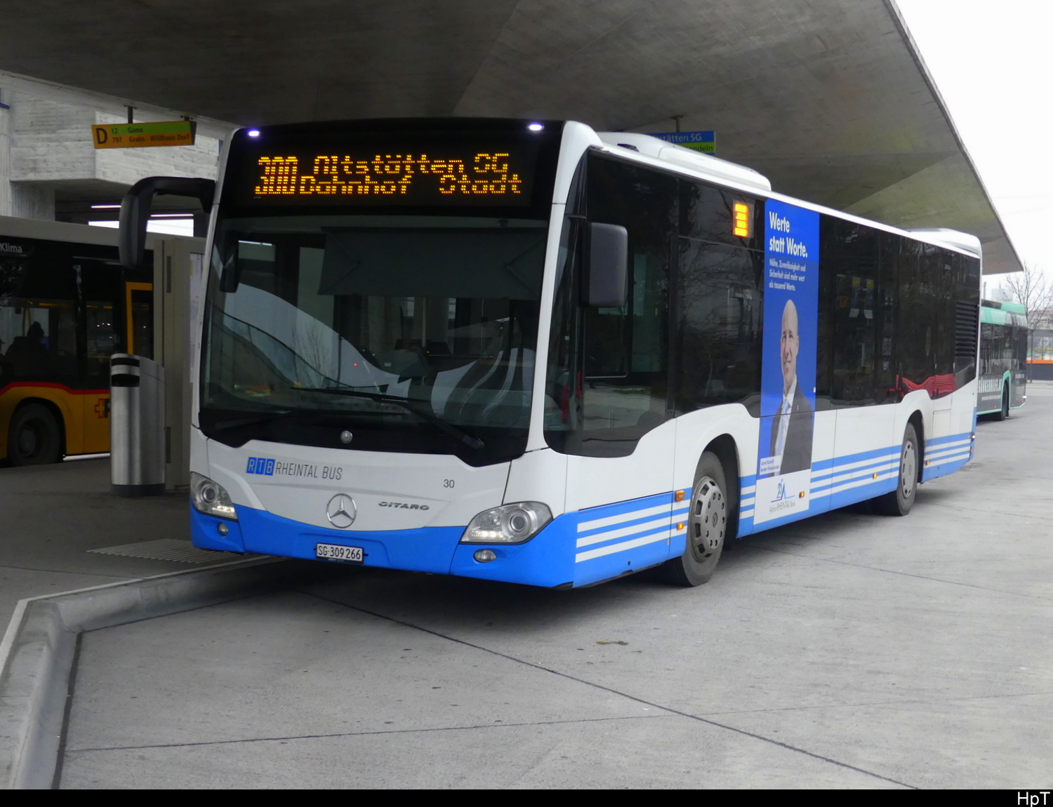 RTB - Mercedes Citaro  Nr.30  SG 309266 bei den Haltestellen vor dem Bahnhof Buchs am 26.12.2025