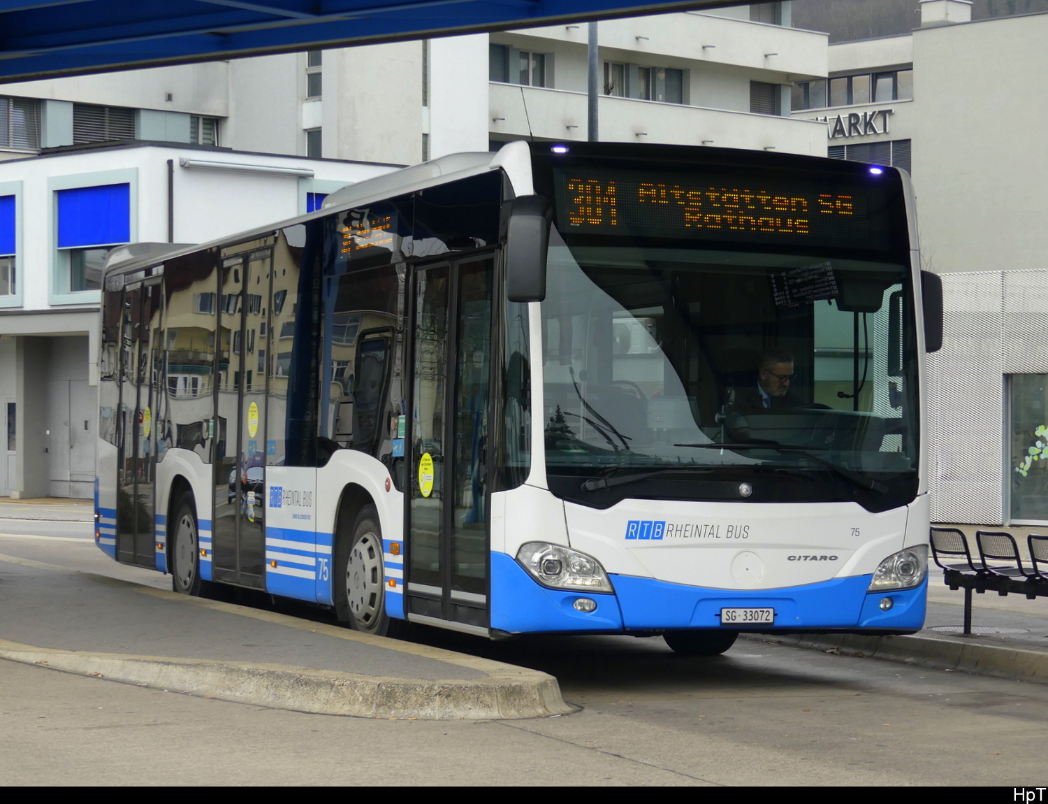 RTB - Mercedes Citaro Nr.75 SG 33072 bei den Haltestellen vor dem Bahnhof Heerbrugg am 26.12.2025