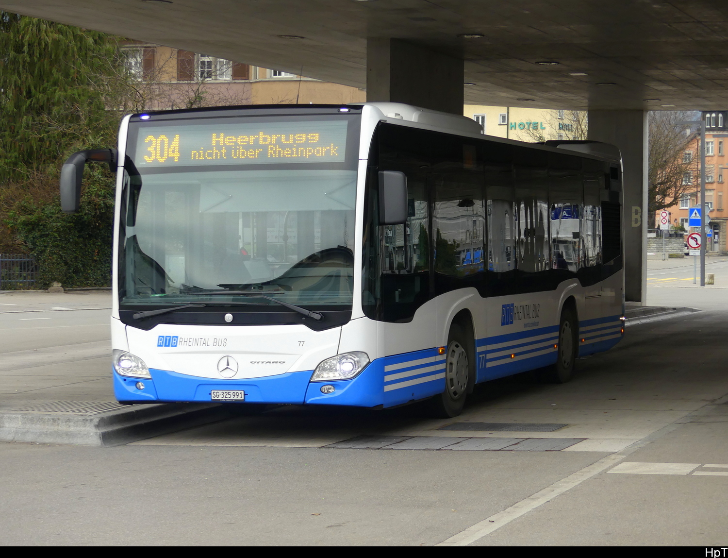 RTB - Mercedes Citaro Nr.77  SG 325991 bei den Haltestellen vor dem Bahnhof St. Margrethen am 26.12.2025