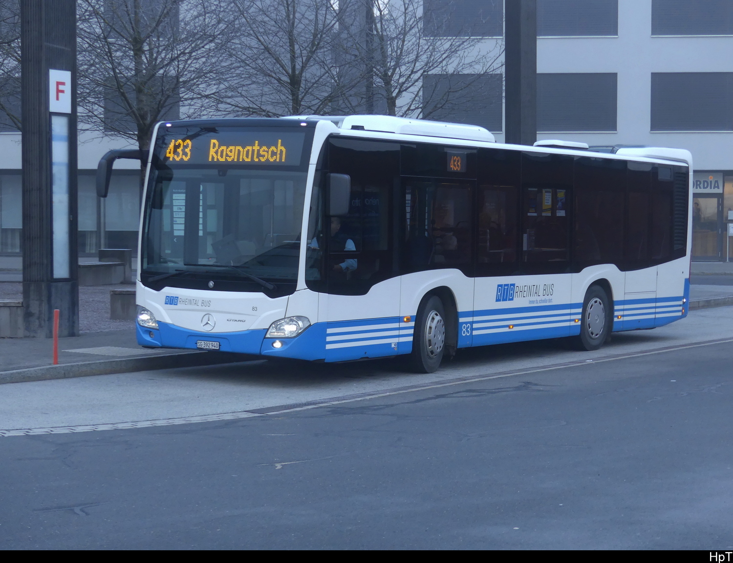 RTB - Mercedes Citaro Nr.83 SG 392940 bei den Haltestellen vor dem Bahnhof Sargans am 26.12.2025