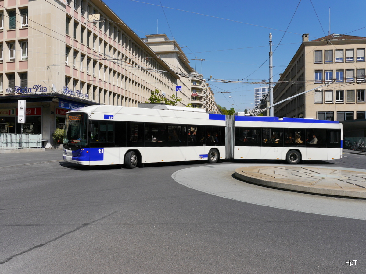 TL - Trolleybus Nr.831 unterwegs auf der Linie 21 vor den SBB Bahnhof in Lausanne am 05.05.2017