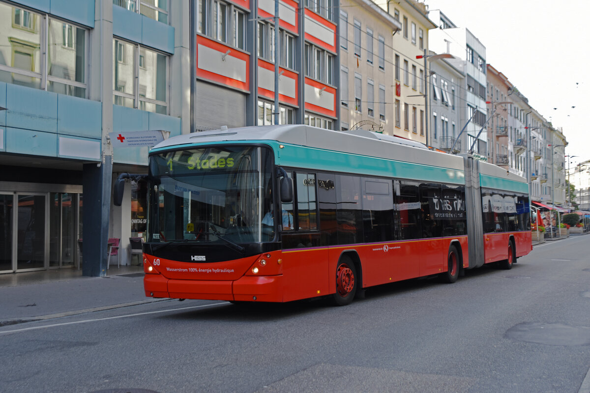 Hess Trolleybus 60, auf der Linie 1, fährt durch die Bahnhofstrasse.