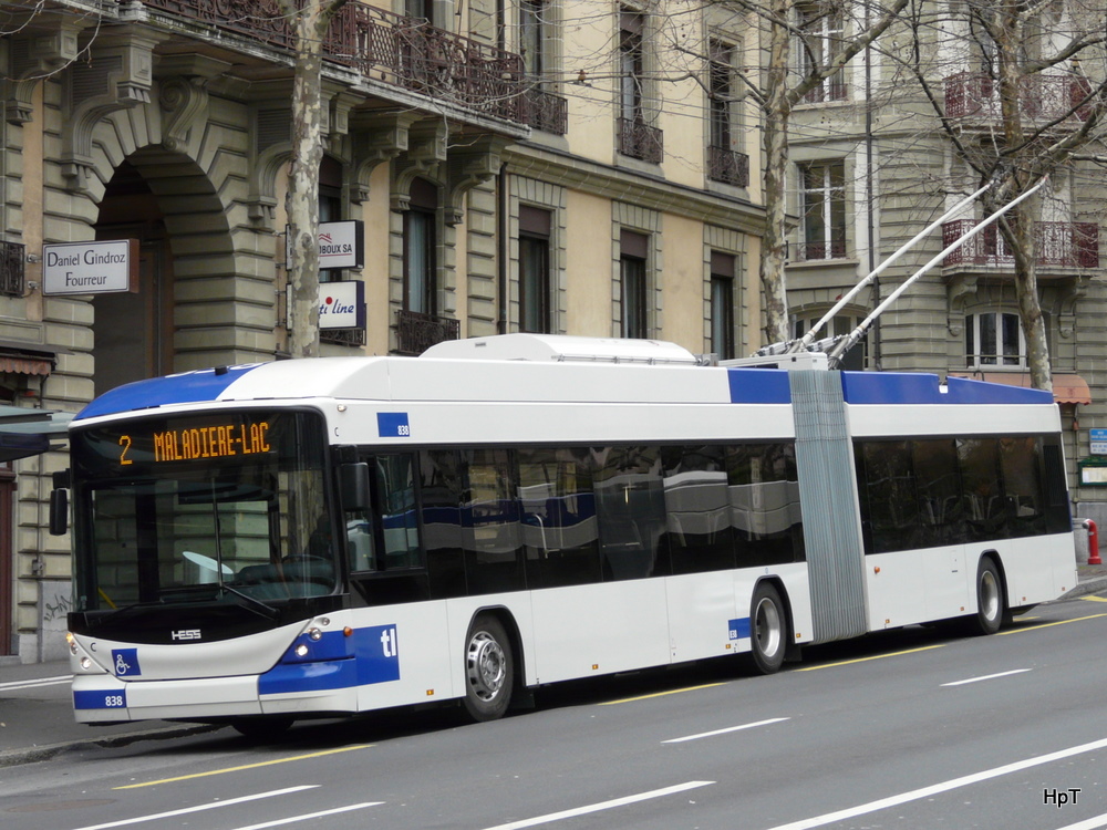 TL - Hess-Swisstrolleybus BGT-N2C  Nr.838 unterwegs auf der Linie 2 in der Stadt Lausanne am 27.03.2010