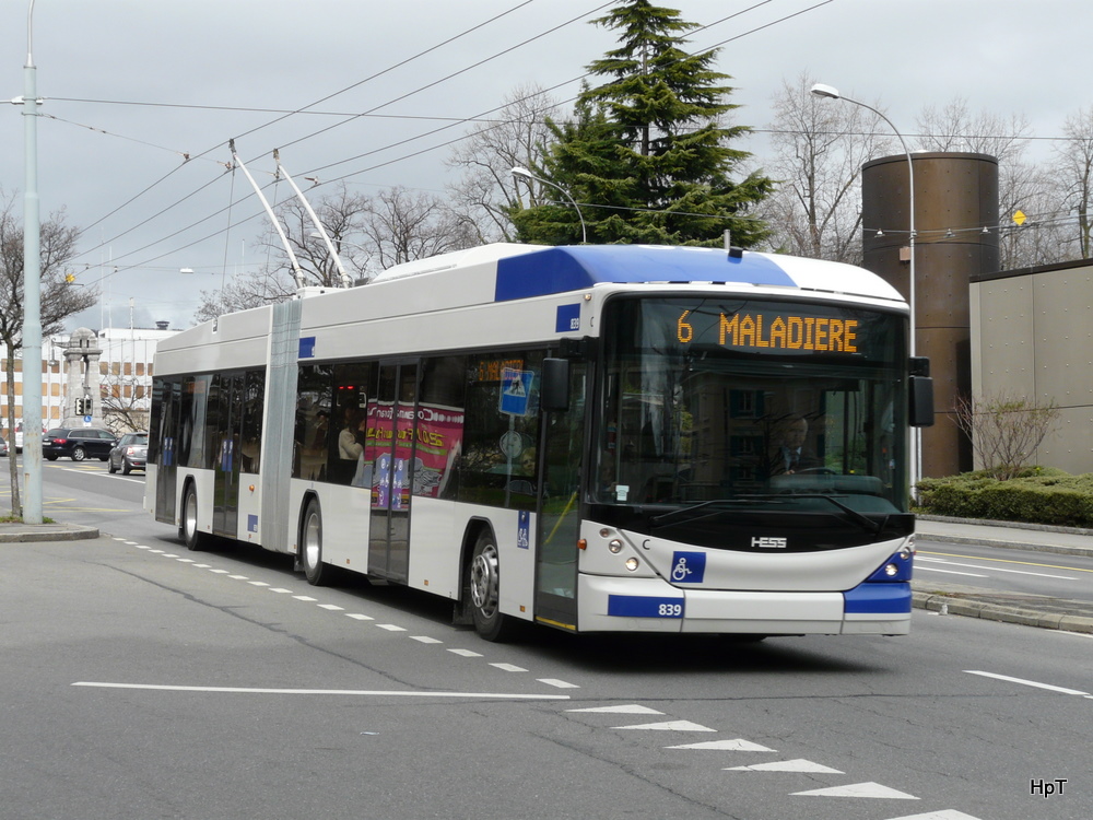 TL - Hess-Swisstrolleybus BGT-N2C Nr.839 unterwegs auf der Linie 6 in der Stadt Lausanne am 27.03.2010