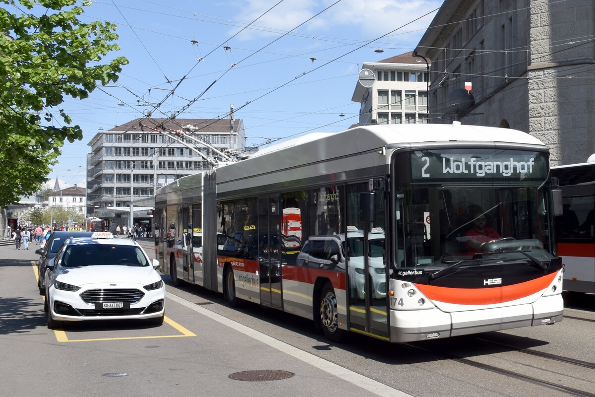 ST. GALLEN (Kanton St. Gallen), 23.04.2025, Bus 174 als Buslinie 2 nach Wolfganghof am Bahnhof St. Gallen