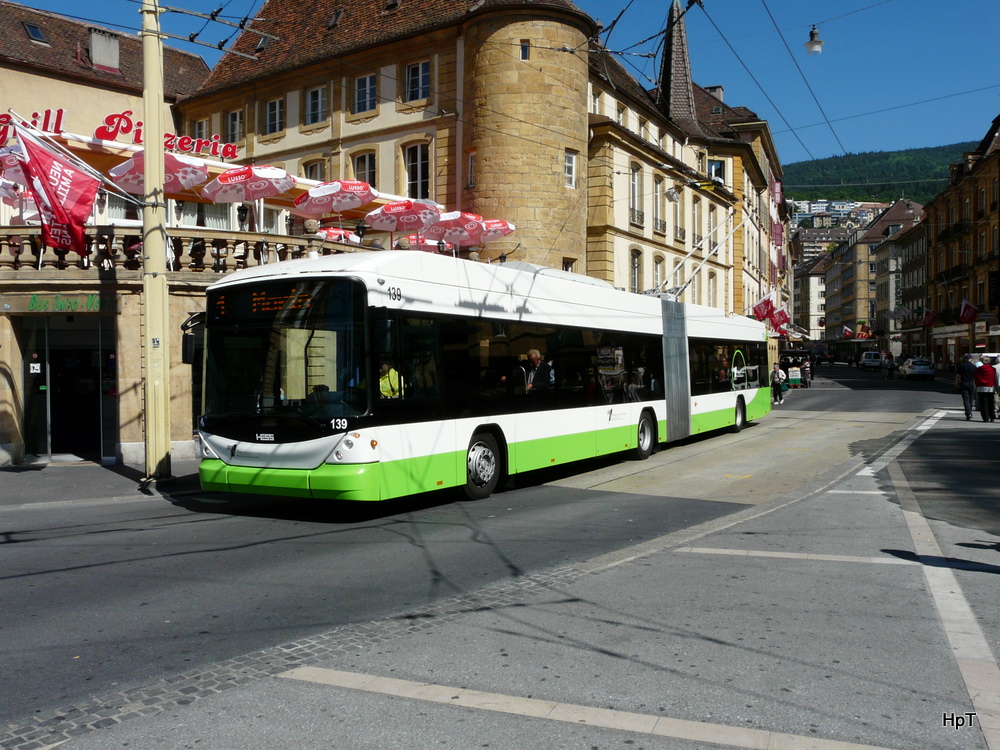 TN Neuchâtel - Hess-Swisstrolley BGT-N2C Nr.139 unterwegs in der Stadt Neuchâtel am 18.05.2011