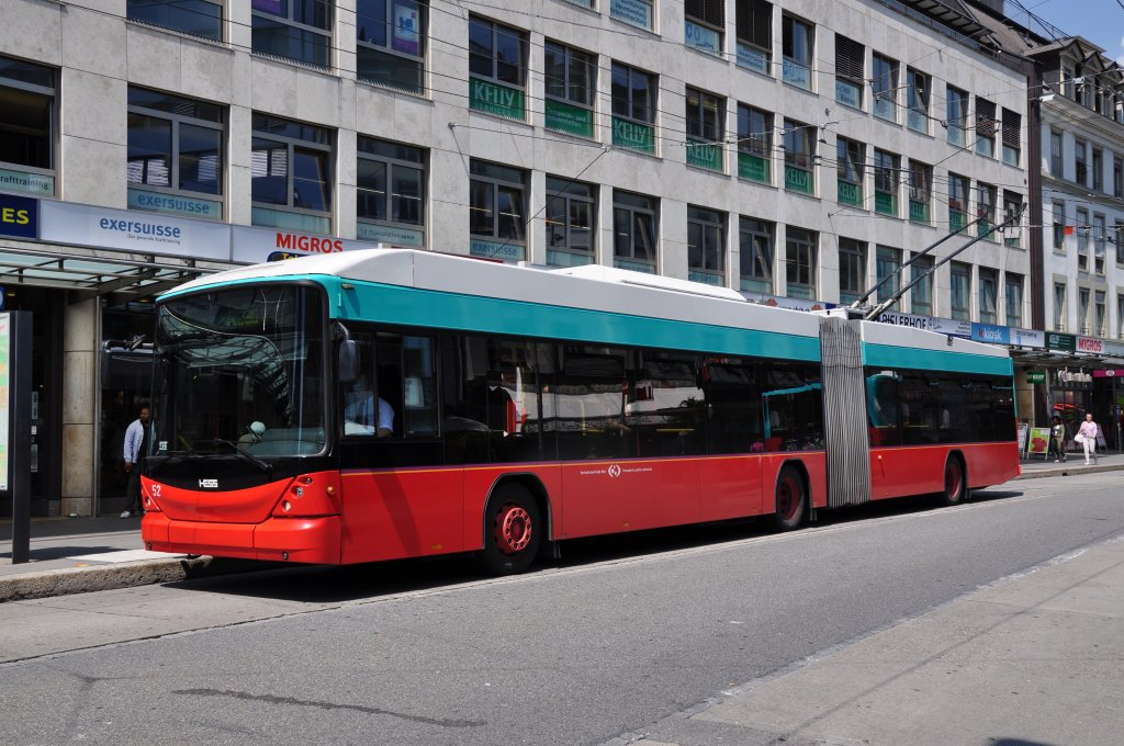 Hess Trolleybus mit der Betriebsnummer 52 auf der Linie 4 in der Arbergstrasse in Biel.