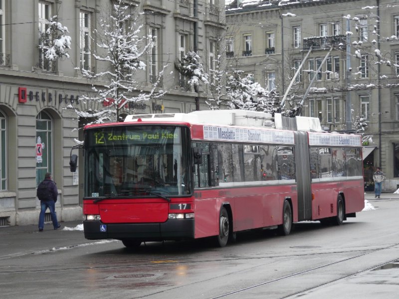 Bern Mobil - NAW Trolleybus Nr.17 unterwegs auf der Linie 12 in Bern am 12.12.2008