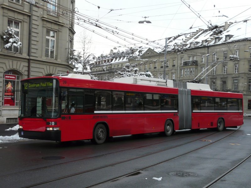 Bern Mobil - NAW Trolleybus Nr.20 unterwegs auf der Linie 12 in Bern am 12.12.2008