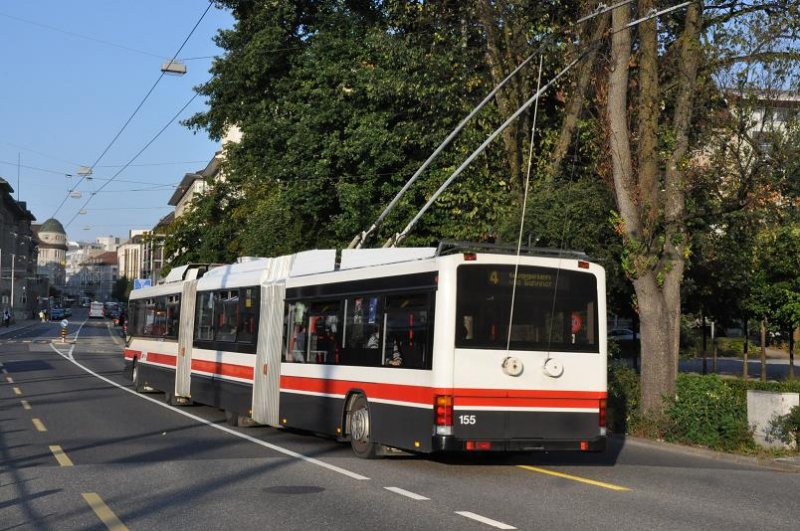 VBSG, St. Gallen Nr. 155 NAW/Hess-Doppelgelenktrolleybus am 8. September 2008 bei der Haltestelle St. Leonhard.