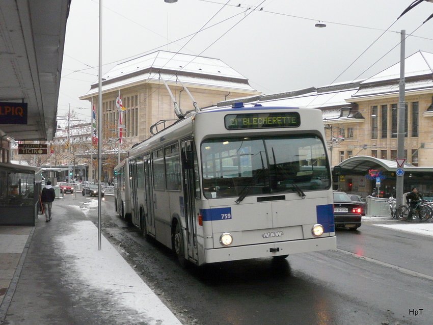 TL - NAW Trolleybus Nr.759 unterwegs auf der Linie 21 in Lausanne am 19.12.2009