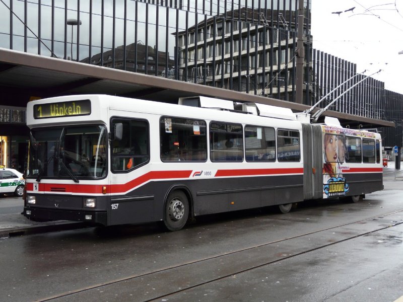 NAW - Trolleybus Nr. 157 bei der Haltestelle vor dem Hauptbahnhof in St.Gallen am 11.11.2007