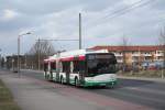 trn La Chaux de Fonds - Solaris Trolleybus Nr.133 unterwegs auf der Linie 1 beim Bahnhof von La Chaux de Fonds im Abendlicht am 22.03.2011
