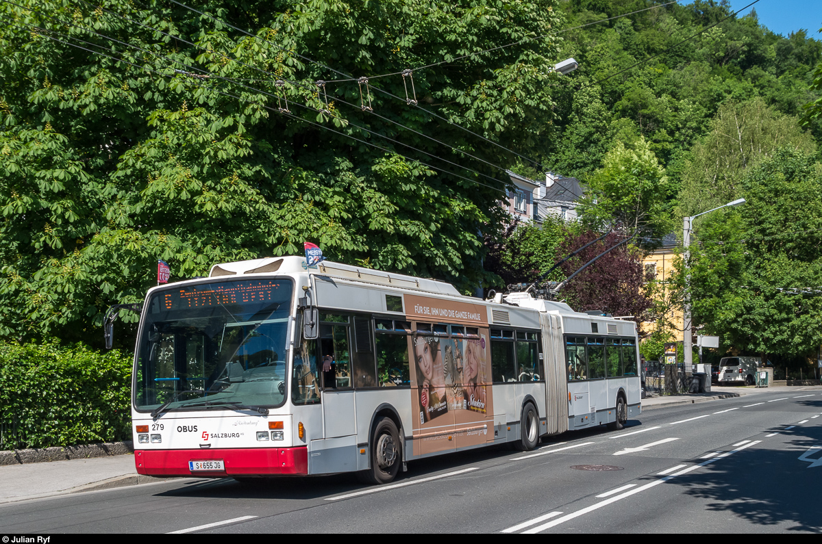 Obus Salzburg VanHool AG 300 T 279 am 26. Mai 2017 in der Imbergstrasse.