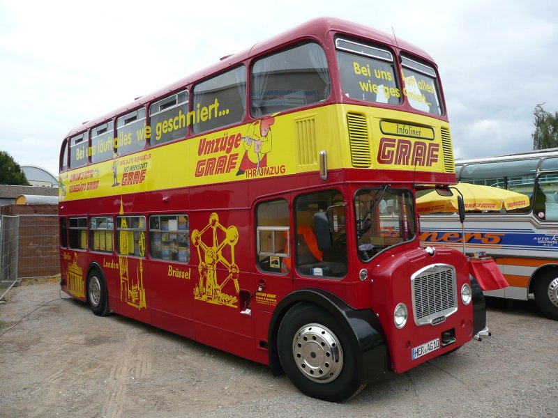 12.09.09,Bristol Lodekka FLF6G,Bj.1966,11600 ccm,152 PS,67 Km/h.Werbebus von Graf Reisen.Tag der Offenen Tür beim Omnibus-Modell-Shop Rhein-Ruhr in Essen.
