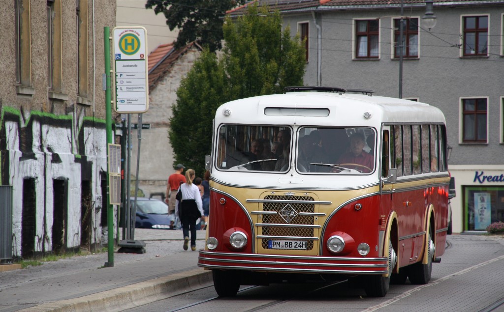 H6 B Bus der Fa. Behrend während einer Sonderfahrt durch Brandenburg an der Havel am 08.09.2012.