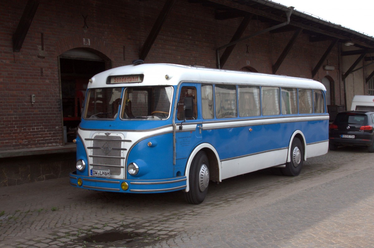 IFA H6B Reisebus mit 39 Plätzen des Omnibusbetrieb Belschner in Freital, Südstraße 19.