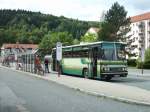 Auf dem Weg von Rostock nach Dresden machen der Rostocker Ikarus 66 214 und der H6B 233 an der Raststätte Freienhufener Eck West Rast. (04.04.2014)