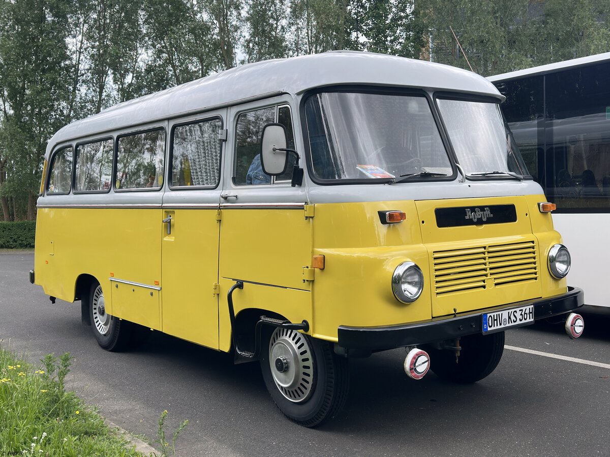 Ein Robur der Oldtimer Freunde Erfurt, am 25.05.2024 beim Tag der offenen Tür der EVAG Erfurt auf dem Betriebshof am Urbicher Kreuz.