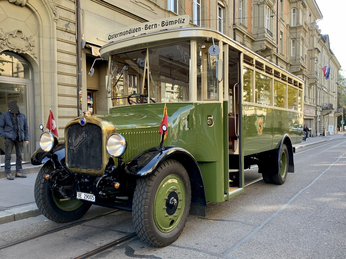 Saurer Schnauzenbus Nr. 5 von Bernmobil Historique am 24.10.21 bei der Schwanengasse in Bern.