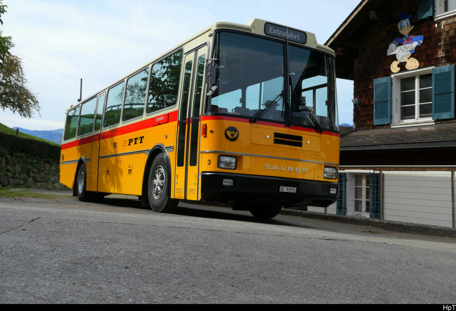 Bellestraz - Oldtimer Bus Saurer von 1965 unterwegs in Martigny am 29.10.2023