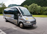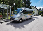 Mercedes 616 CDI von Siebler Reisen, unterwegs auf der Kfl. 5021 als Kurs 11 (Oberdrauburg Bahnhof - Gerlamoos), am 1.7.2016 beim ca. 20-minütigen Aufenthalt an der Haltestelle Greifenburg Gemeindeamt.