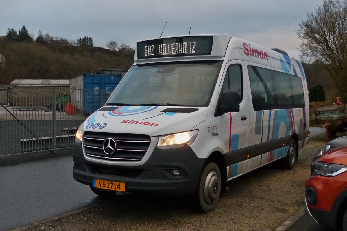 VS 1714, Mercedes Benz Sprinter, von Voyages Simon, wartet am Bahnhof von Wilwerwiltz auf die Ankunft des Zuges. 02.2022