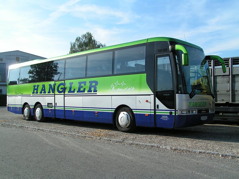 MAN_Royal-Class steht vor der Tierzuchthalle in Ried i.I., bzw. passend dazu neben einem Viehtransporter; 090819