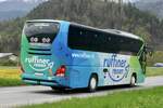 Heckansicht des Neoplan Tourliner "VS 16677" von Ruffiner Reisen am 23.4.23 auf der Gsteigstrasse in Wilderswil.