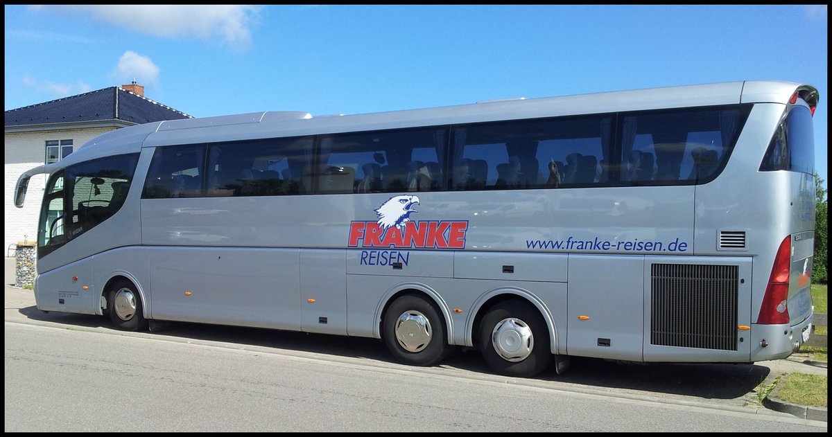 Scania Irizar von Franke-Reisen aus Deutschland im Gewerbegebiet Sassnitz am 28.06.2014