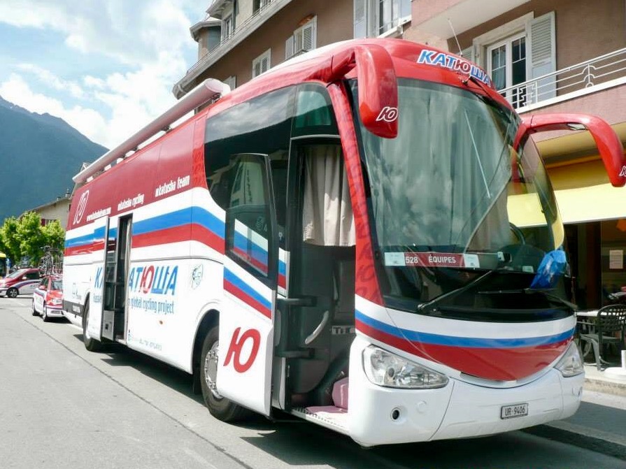 Scania Irizar als Mannschaftscar vom Radteam Katiowa am 22.7.14 in Martigny.